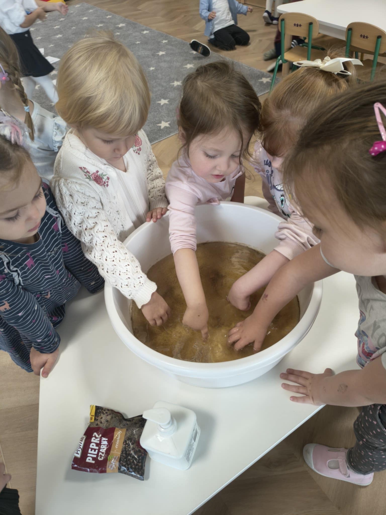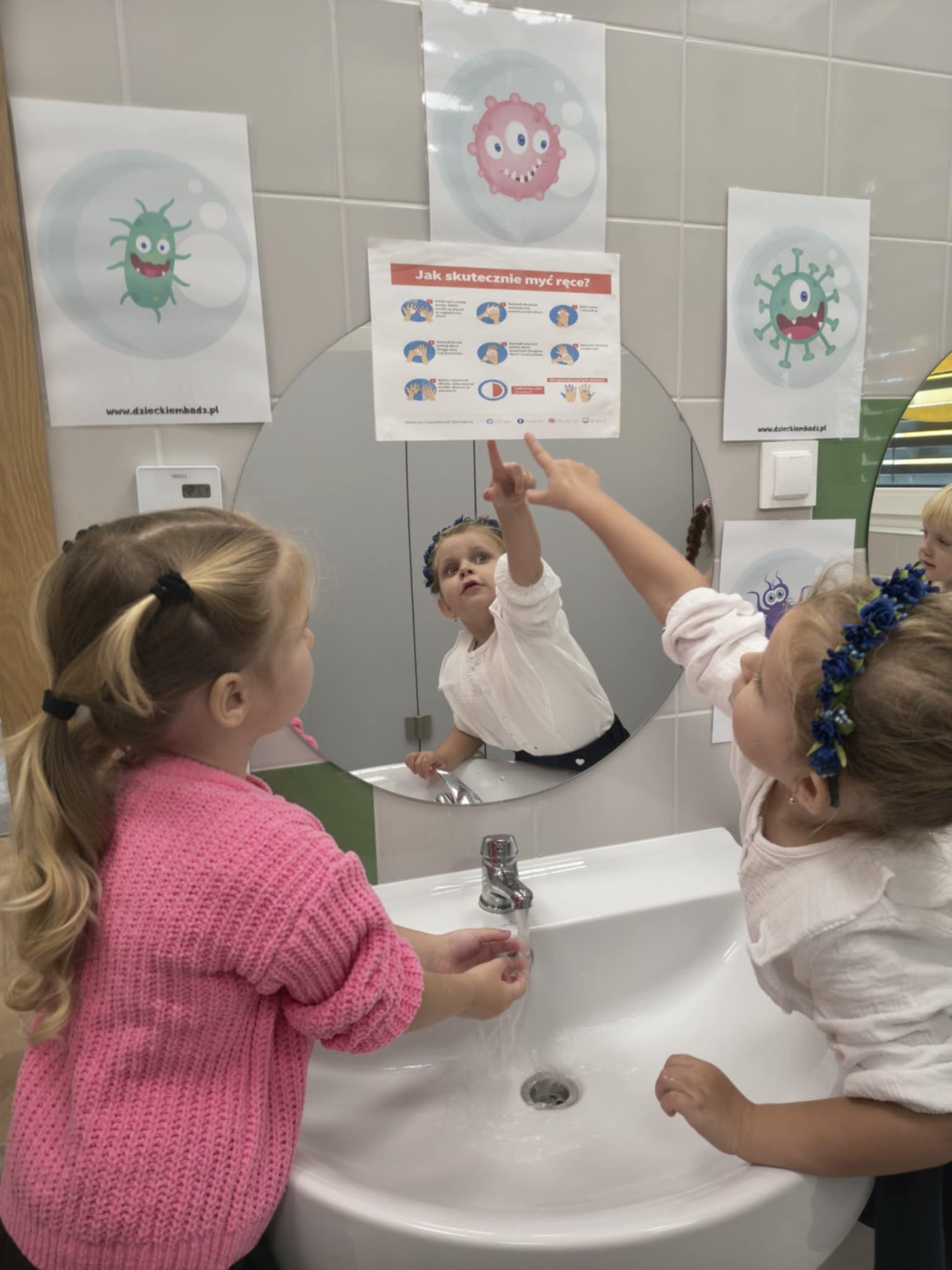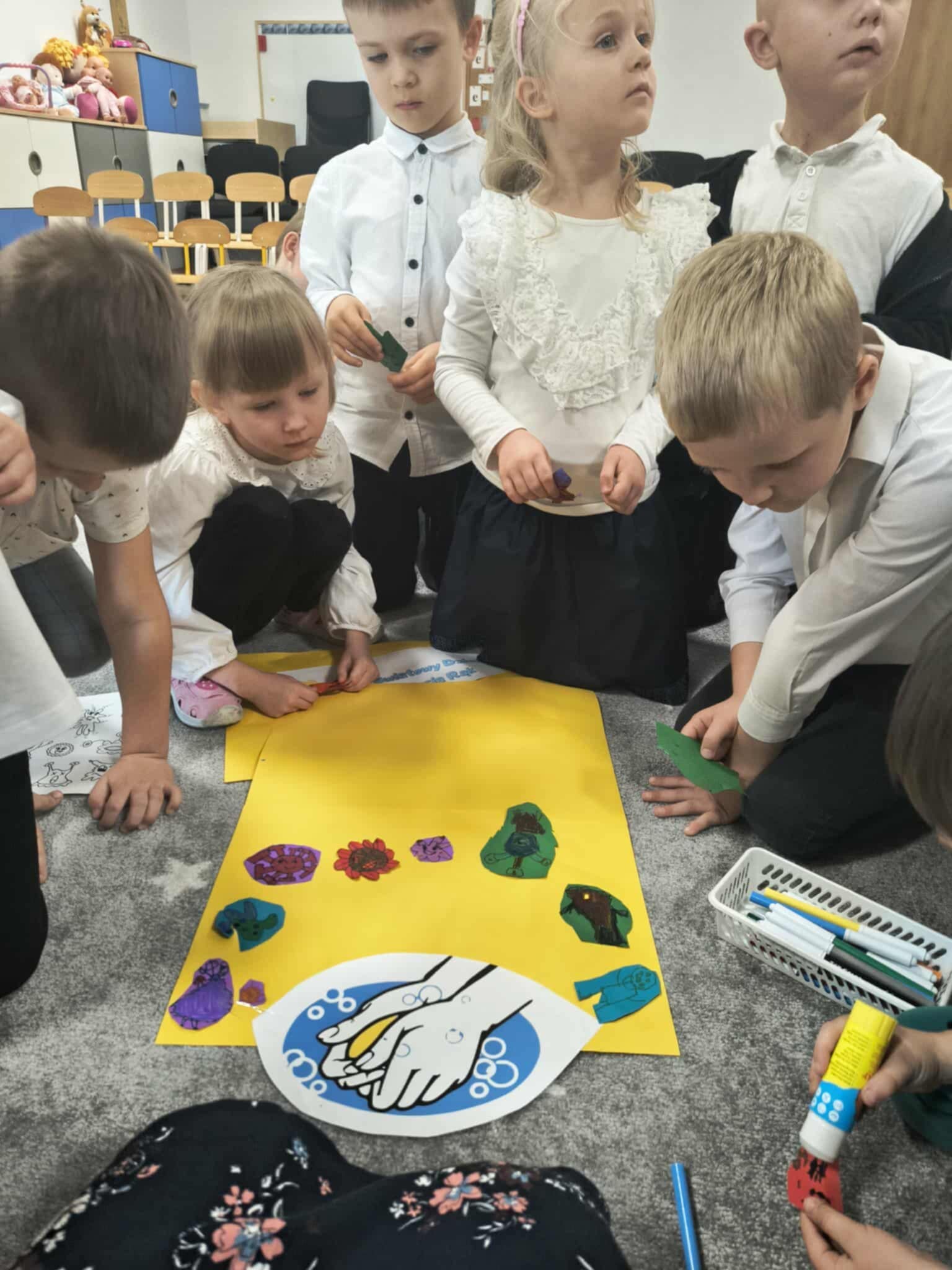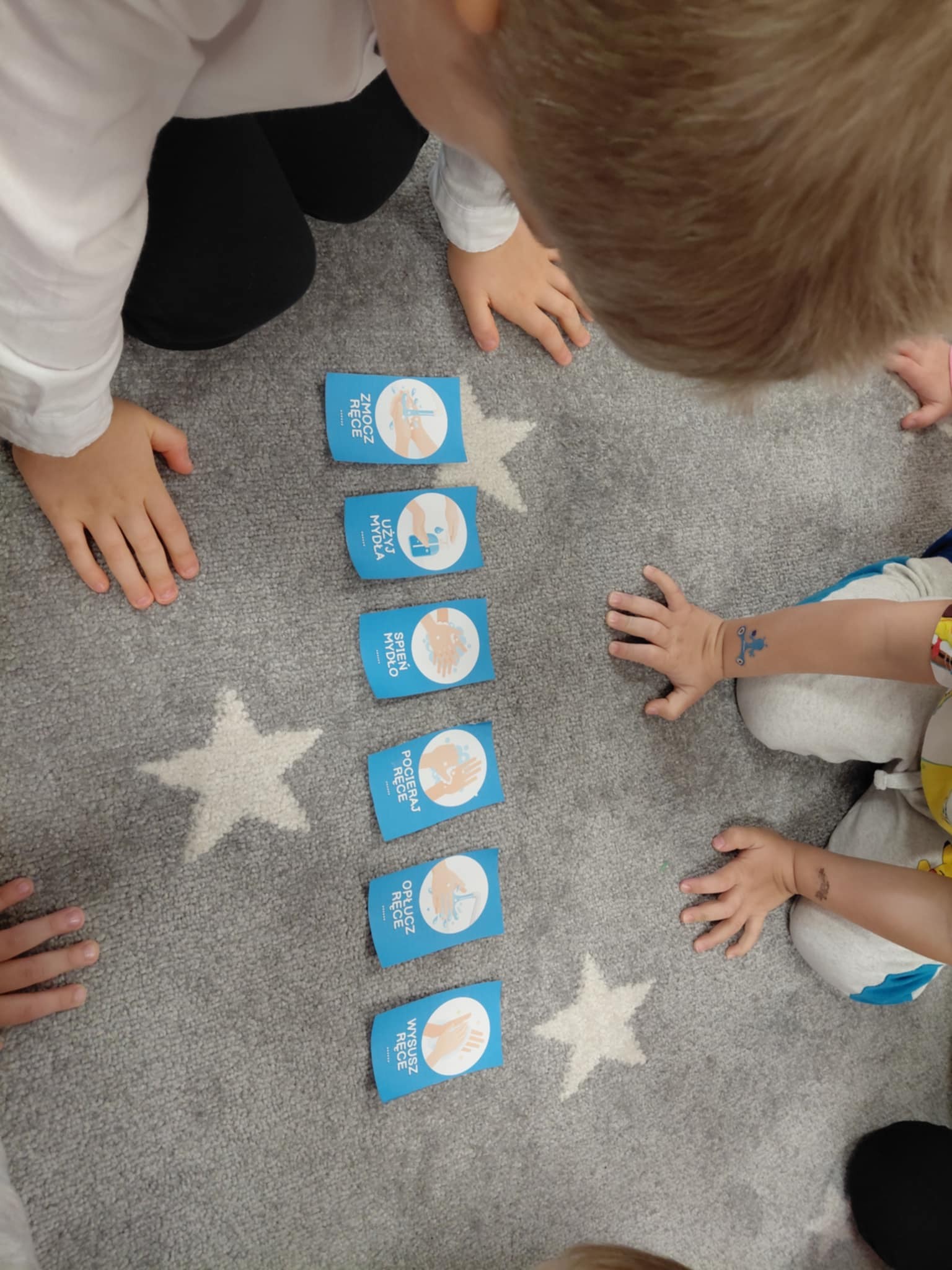 Światowy Dzień Mycia Rąk, który obchodzimy 15 października jest okazją do przypomnienia o znaczeniu higieny. W związku z tym we wszystkich grupach odbyły się rozmowy na temat zarazków, bakterii i wirusów, które dostają się do organizmu przez brudne ręce. Wszystkie zajęcia i zabawy w dniu dzisiejszym koncentrowały się na myciu rąk i miały charakter działań dzieci.
